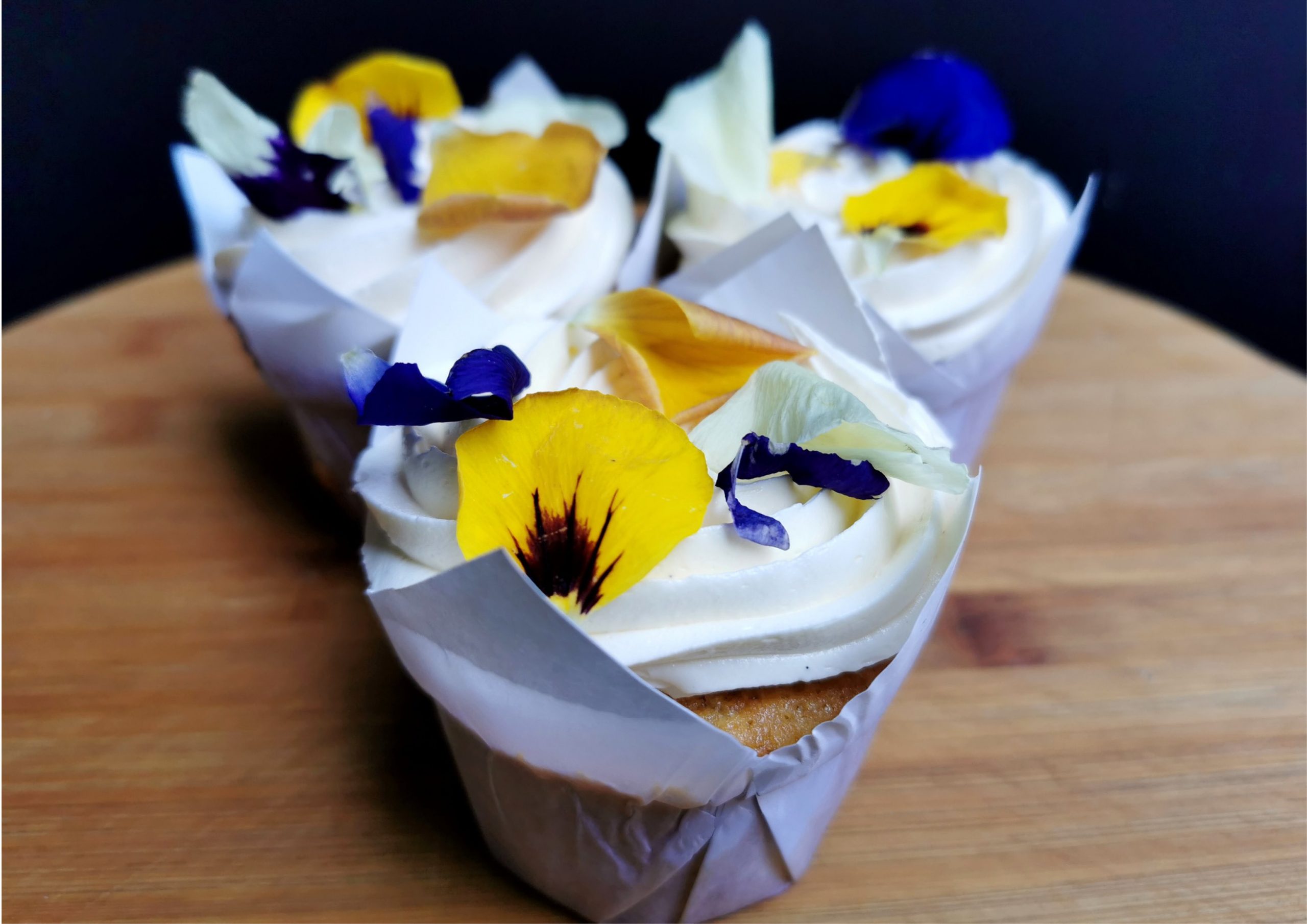 Vanilla Cupcakes Topped with Buttercream & edible Flowers